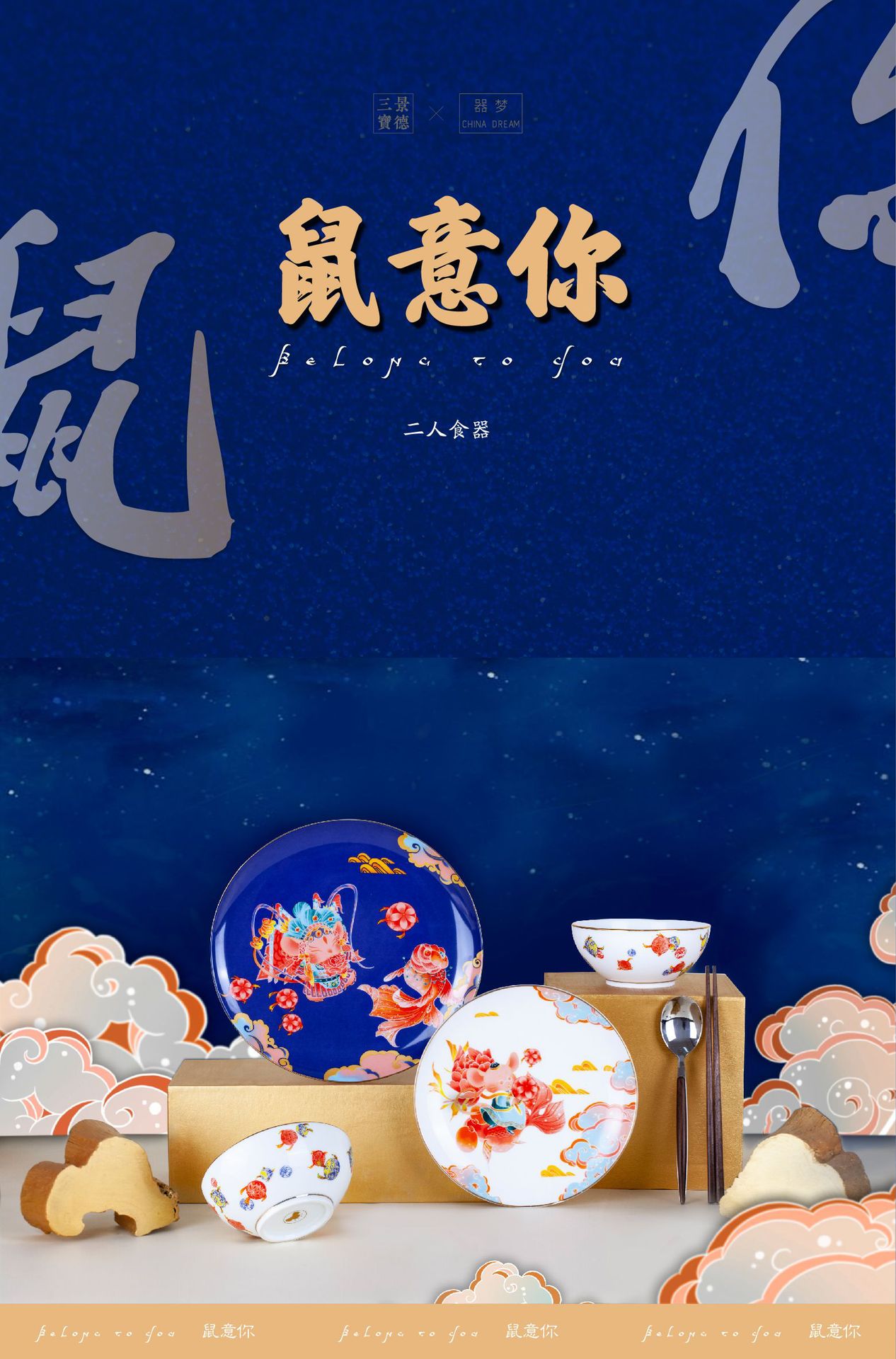 “鼠于你”創(chuàng)意陶瓷碗盤套裝