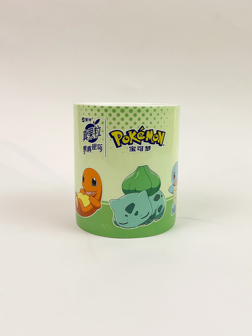 真果粒是蒙牛集團推出的全球首款含有可嚼果粒的新一代牛奶飲品。2006年就已經(jīng)首創(chuàng)成功并推向市場。作為中國乳業(yè)的龍頭,蒙牛始終堅持自主創(chuàng)新的原則,積極探索著更適合中國人身體膳食結構的營養(yǎng)飲品,面對全球30%以上人口維生素等營養(yǎng)缺乏及亞健康狀態(tài)的困擾,蒙牛組織各方專家綜合探討,得出最行之有效的方案即是通過合理的膳食來改善營養(yǎng)狀況,尤其是多吃富含維生素的水果、多喝牛奶,更進一步提出了“真實果粒+純鮮牛奶”的大膽構想,真實就是真果粒。蒙牛集團找到我們,想要定制一款關于真果粒與寶可夢聯(lián)動的杯子,經(jīng)過不斷地設計調整,最終選定,下面是產(chǎn)品的實拍圖: